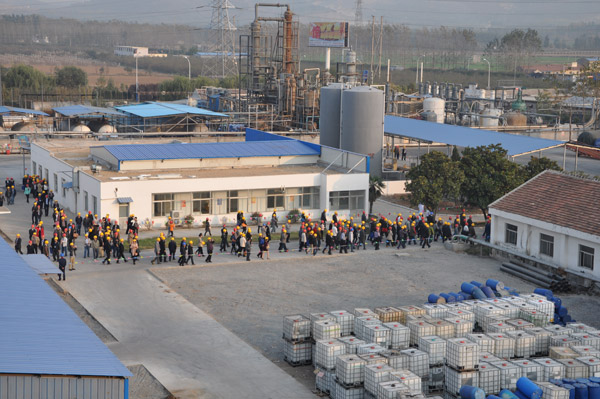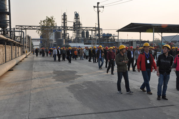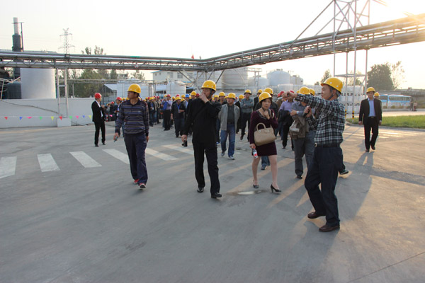 2013年第33屆水處理年會,在山東棗莊開元鳳鳴山莊召開,會議第一天,全國300多名水處理專家和同行,參觀山東泰和科技股份有限公司,并在泰和的倉儲立體庫門前完成了本次年會的大合照。所有代表參觀了泰和工廠,泰和經(jīng)過這么多年的飛速發(fā)展,現(xiàn)在過萬噸成套設(shè)備有年產(chǎn)2萬噸60%HEDP及聯(lián)產(chǎn)1.5萬噸乙酰氯裝置1套,年產(chǎn)2.5萬噸ATMP生產(chǎn)裝置1套,年產(chǎn)1萬噸1227裝置2套。